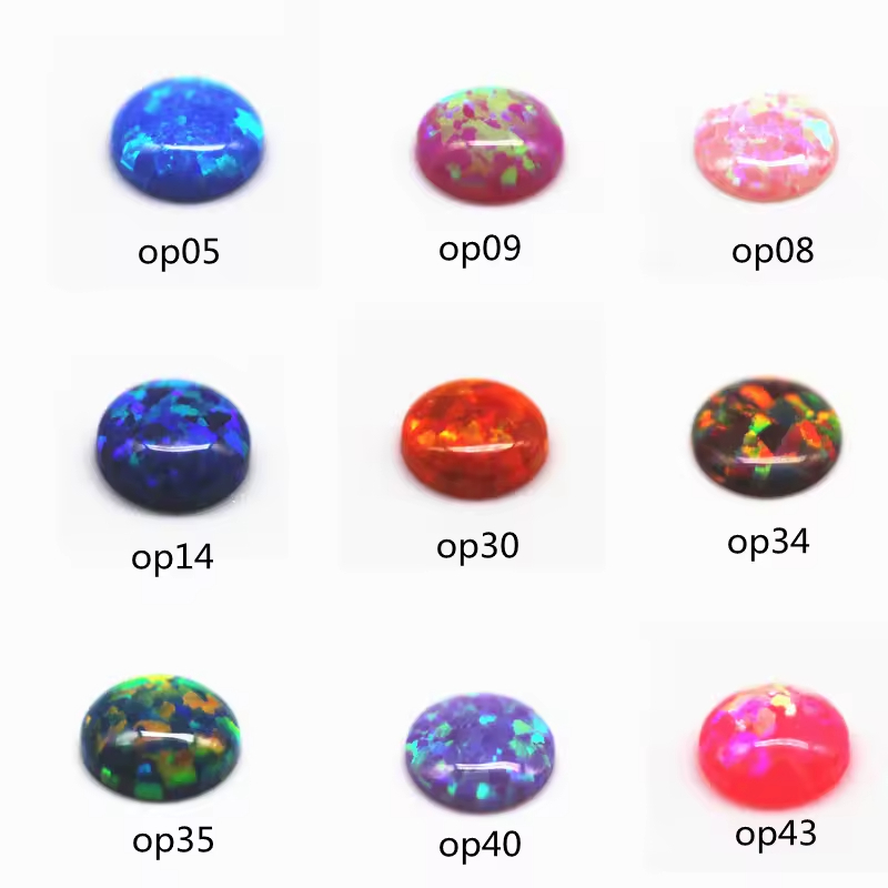 2mm-12mm 92 Multicolor Synthetic Opal Round Flat Back Cabochon Cut OP#14 Fire Opal Loose Gemstone Artificial Opal Cabochon Gems