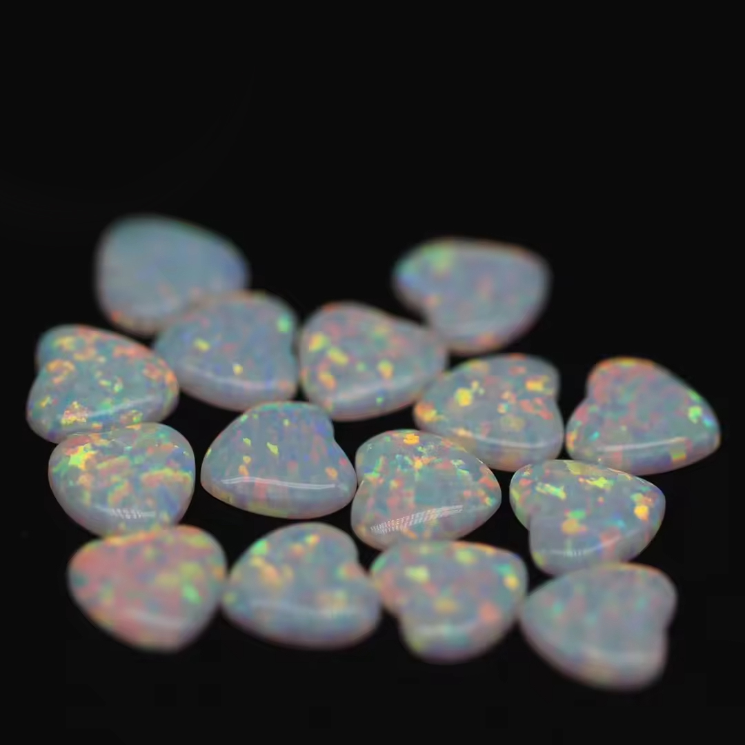 Factory Price 3*3-10*10mm 92 Multicolored Heart Cabochon Opal OP#17 White Fire Opal Loose Gemstones Heart Opal Cabochon Cut Gems
