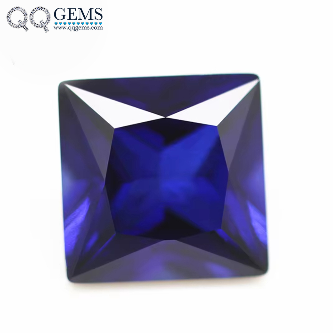 5A Quality square Shape Princess Cut 34# Blue Sapphire Corundum Loose Gemstone square Cut Synthetic 34# Corundum Sapphire Stones