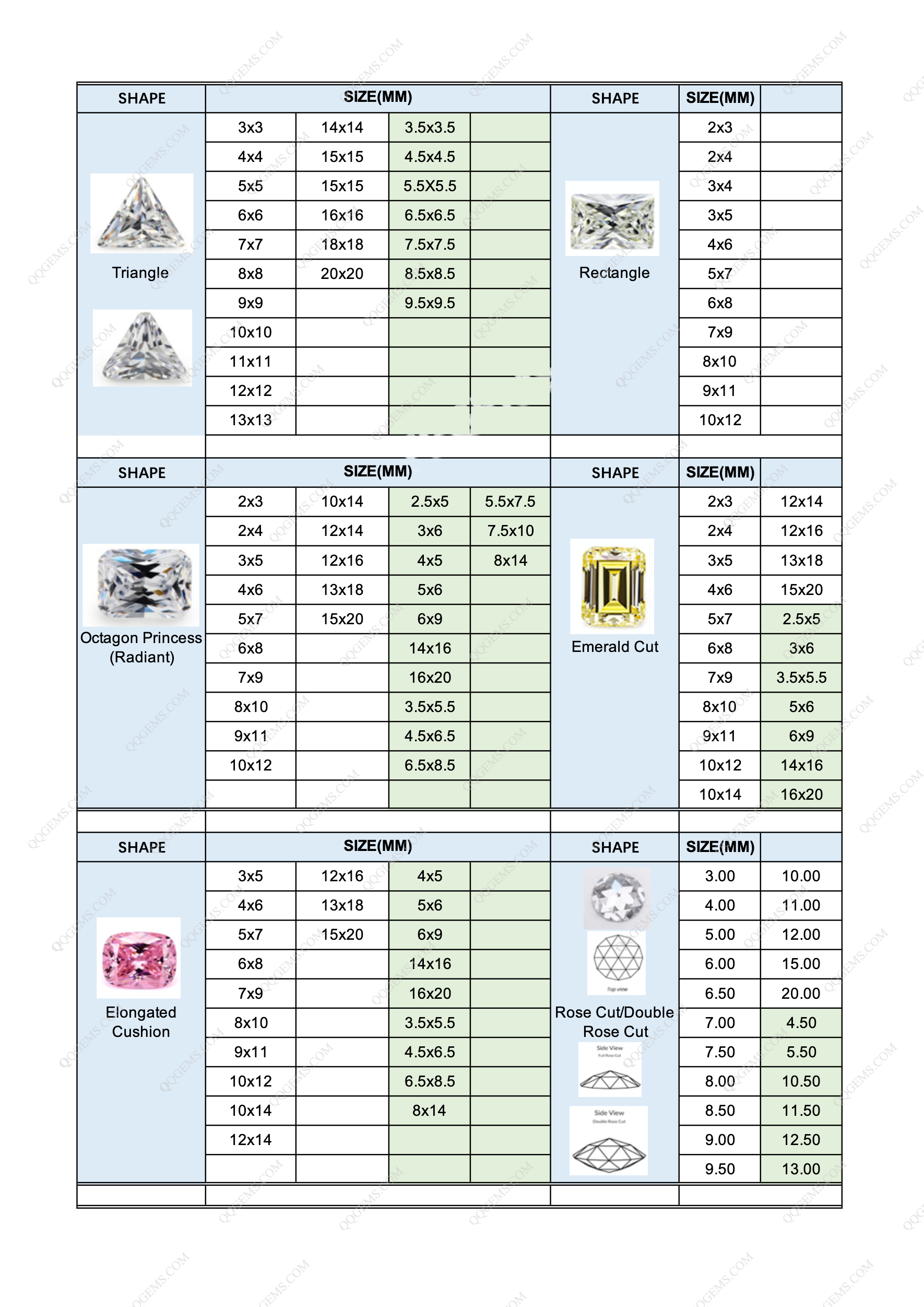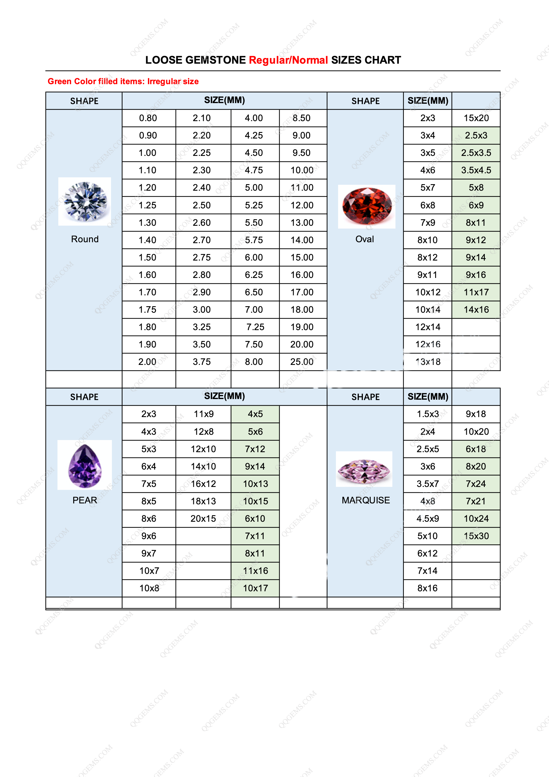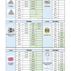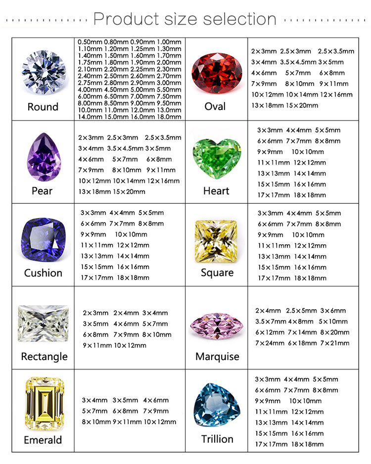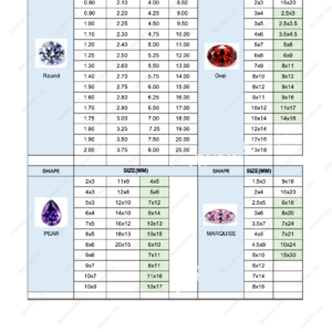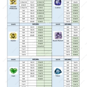 LOOSE GEMSTONE POPULAR SHAPES & SIZES CHART