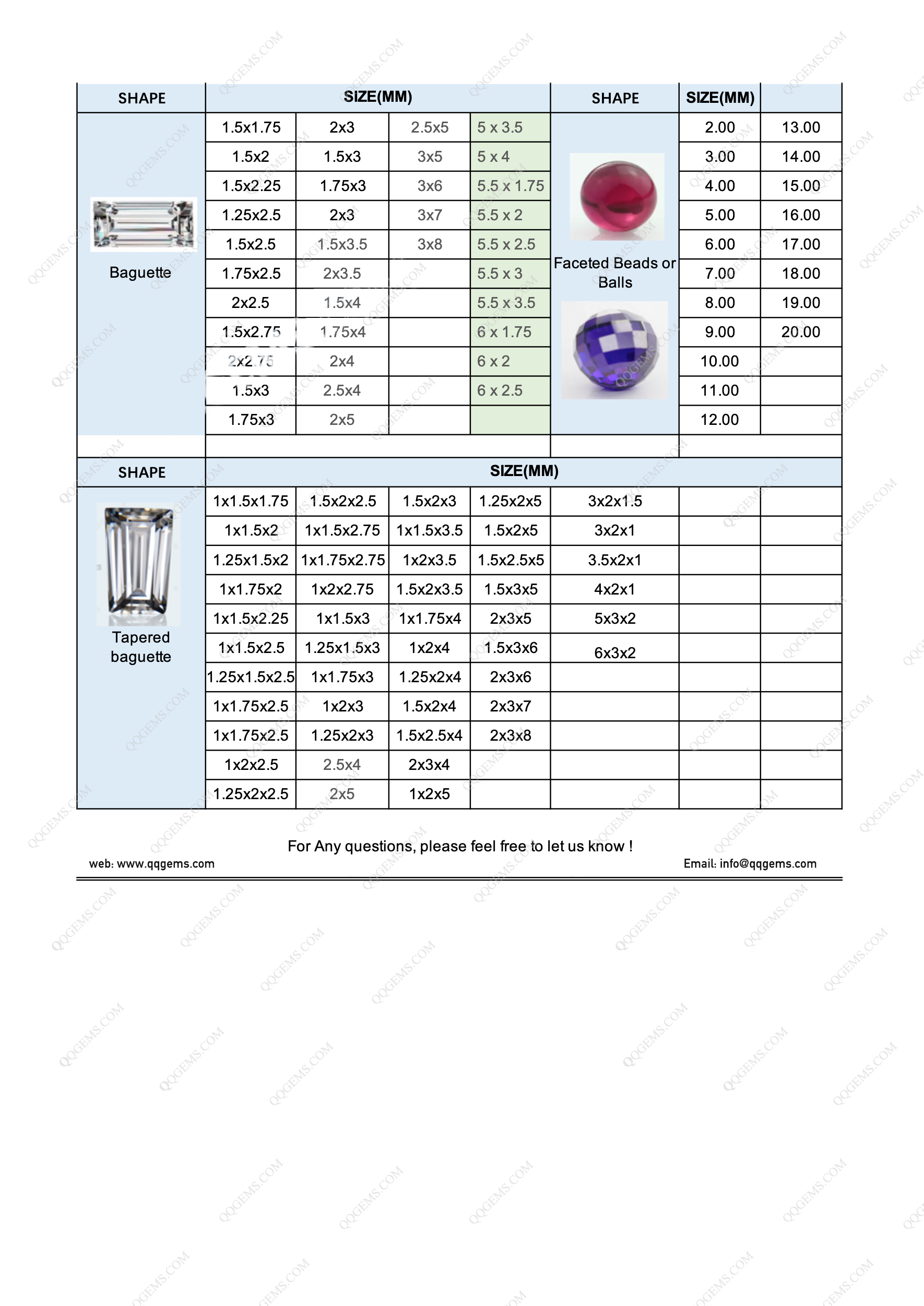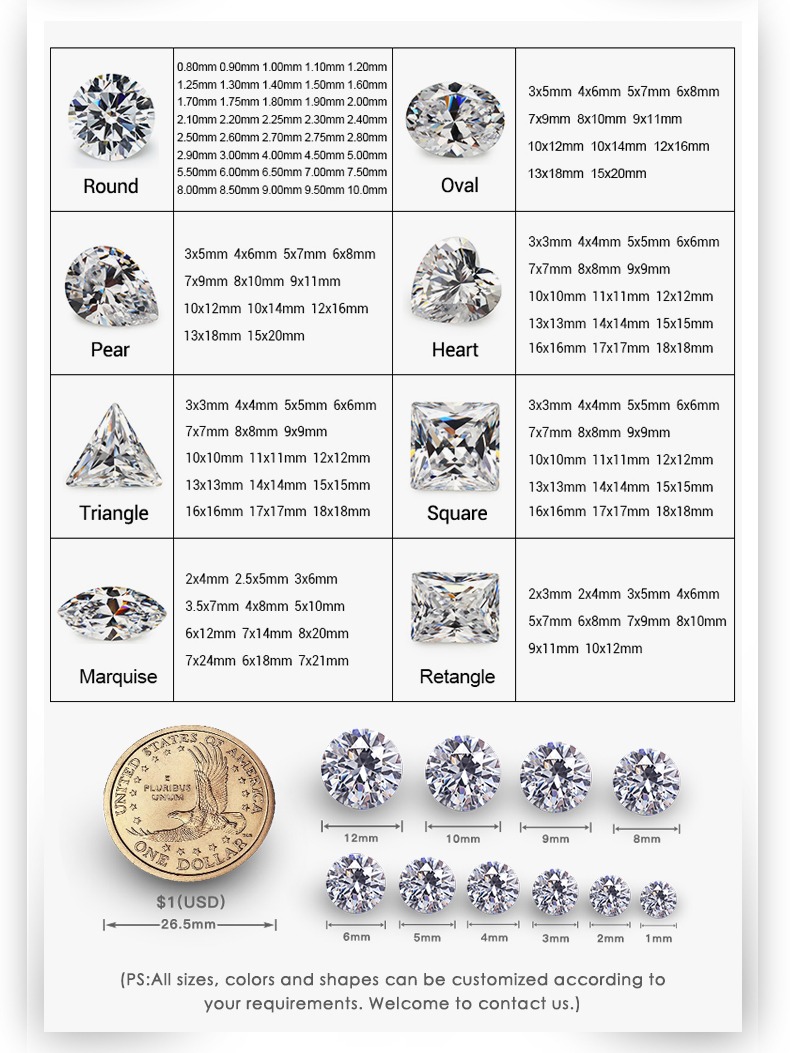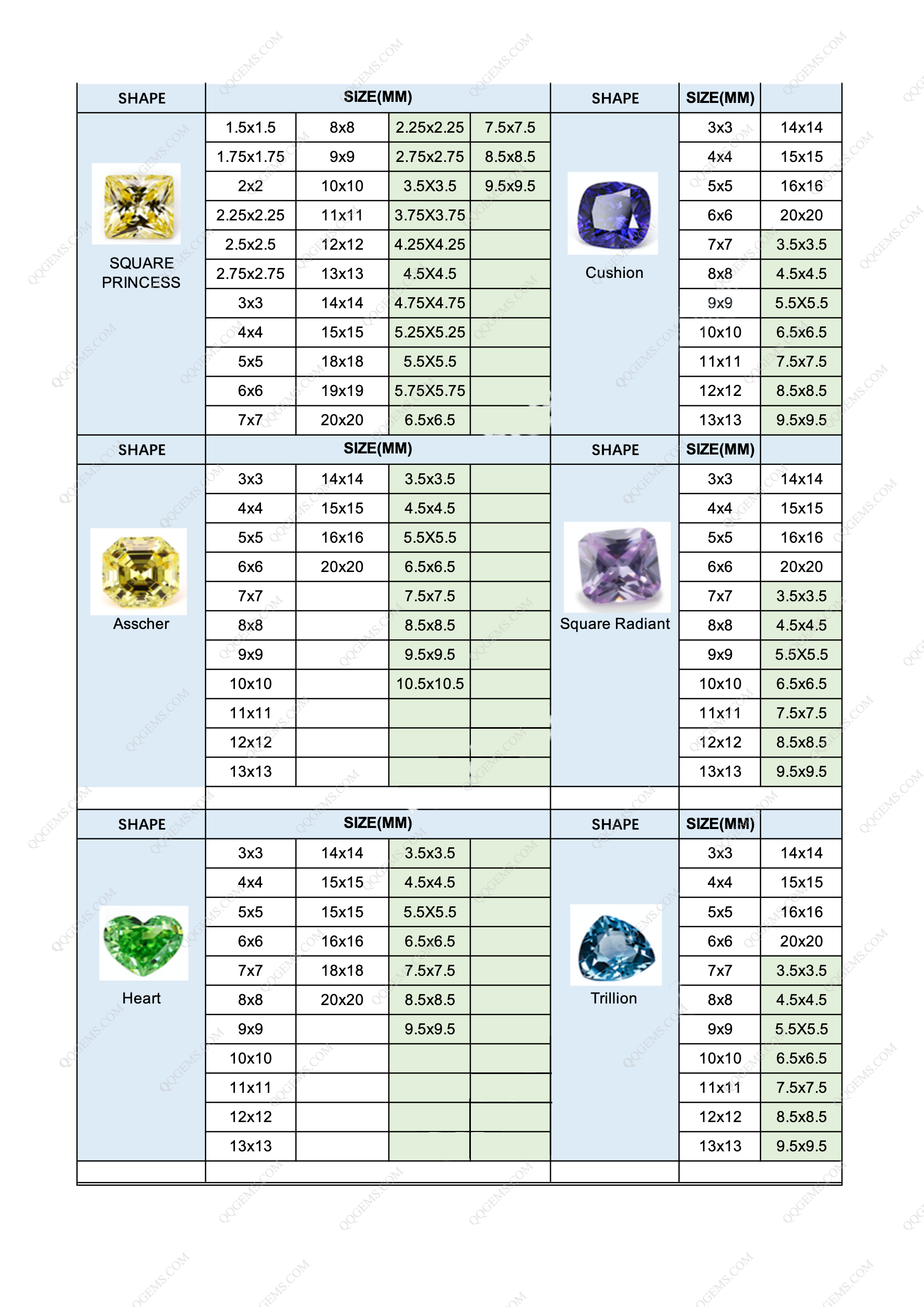 LOOSE GEMSTONE POPULAR SHAPES & SIZES CHART