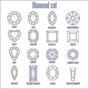 The popular shapes/Cuts of Loose stones: Round, Oval, Pear, Marquise, Square, Cushion, Asscher, Radiant(Square), Heart, Trillion, Triangle, Rectangle, Octagon, Emerald, Elongated Cushion, Rose cut, Baguette, Beads/Balls, Tapered Baguette ect.