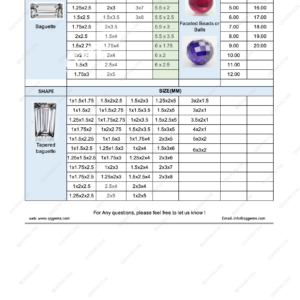 There're 4 pages embedding in the PDF file.Including the popular shapes and sizes of gemstones.