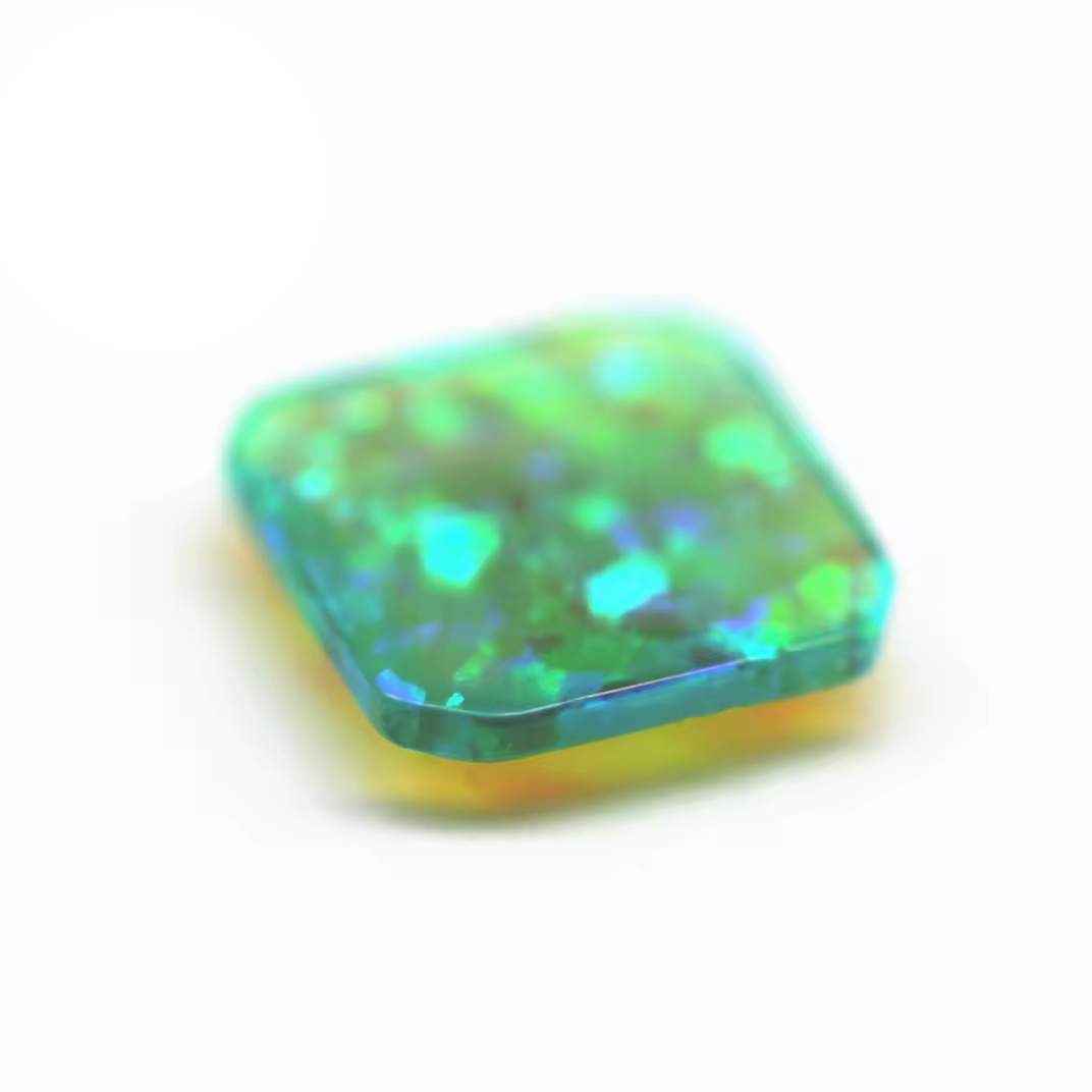 3*3-10*10mm Multicolored Synthetic Opal square Flat Back Cabochon Cut Opal OP#11 Light Green Fire Opal Cabochon Loose Gemstones