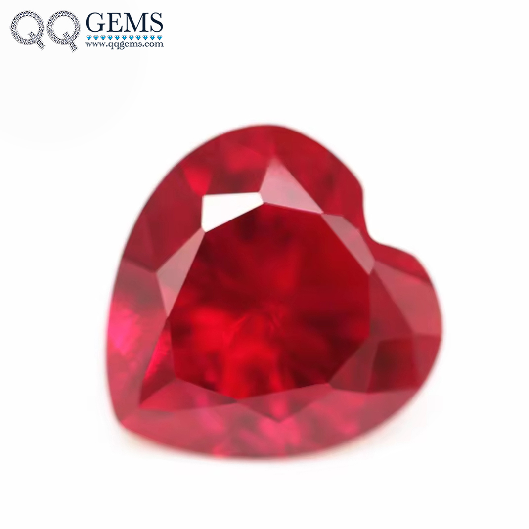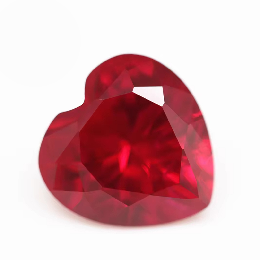 5A Quality 3*3mm-12*12mm Diamond Cut Heart Cut 5# Ruby Corundum Loose Gemstones Heart Shape Synthetic Corundum 5# Ruby Gemstones