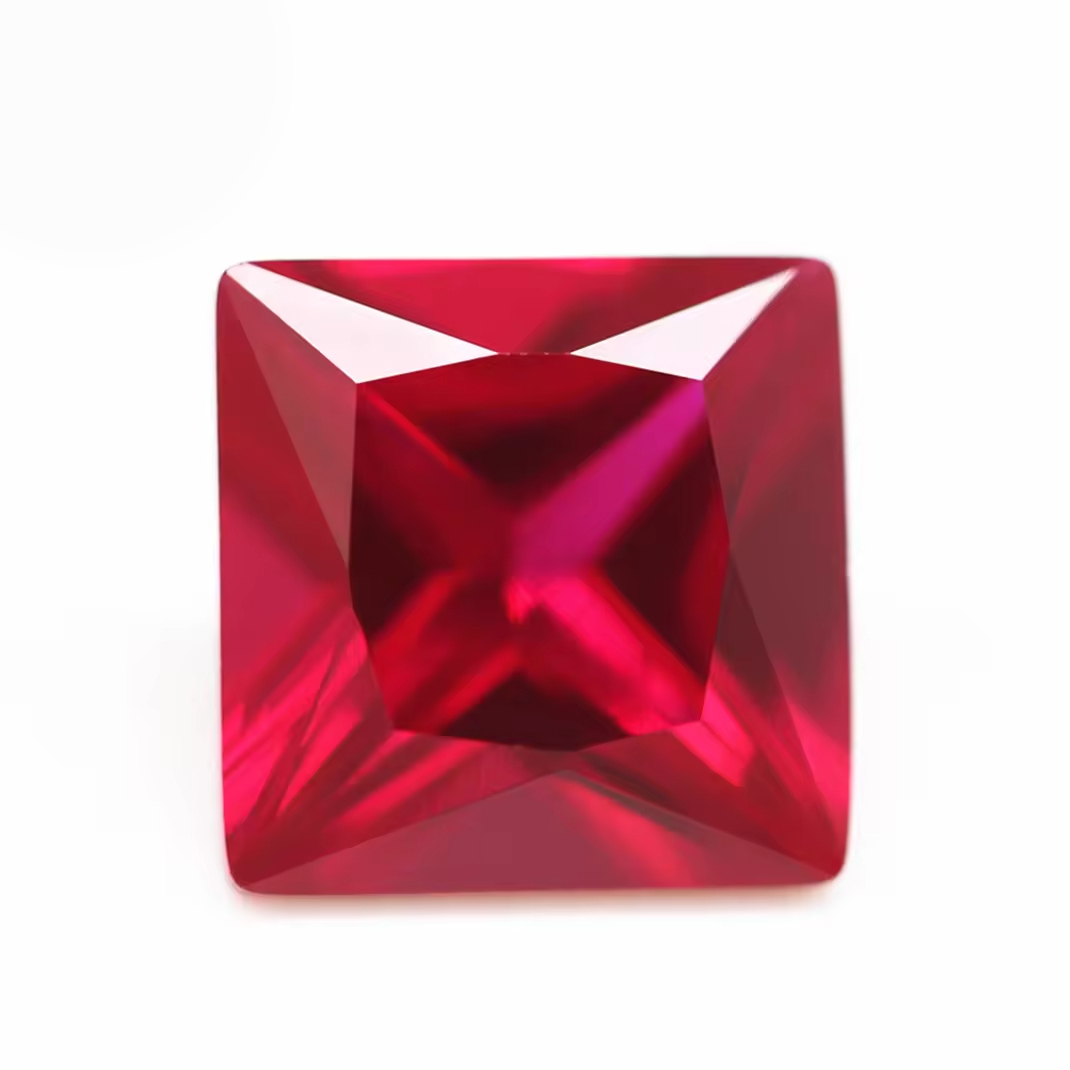 Princess Cut 5# Ruby Corundum Loose Gemstones square Shape SyntheticGemstone Fancy Cut Synthetic 5# Red Corundum Ruby Sapphire Gems