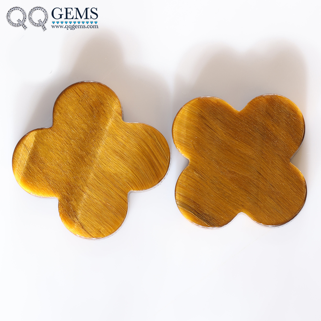 Wholesale New Product Natural Tiger's Eye Gemstones Four Leaf Clover Shape High Quality Loose Natural Stone for Sale