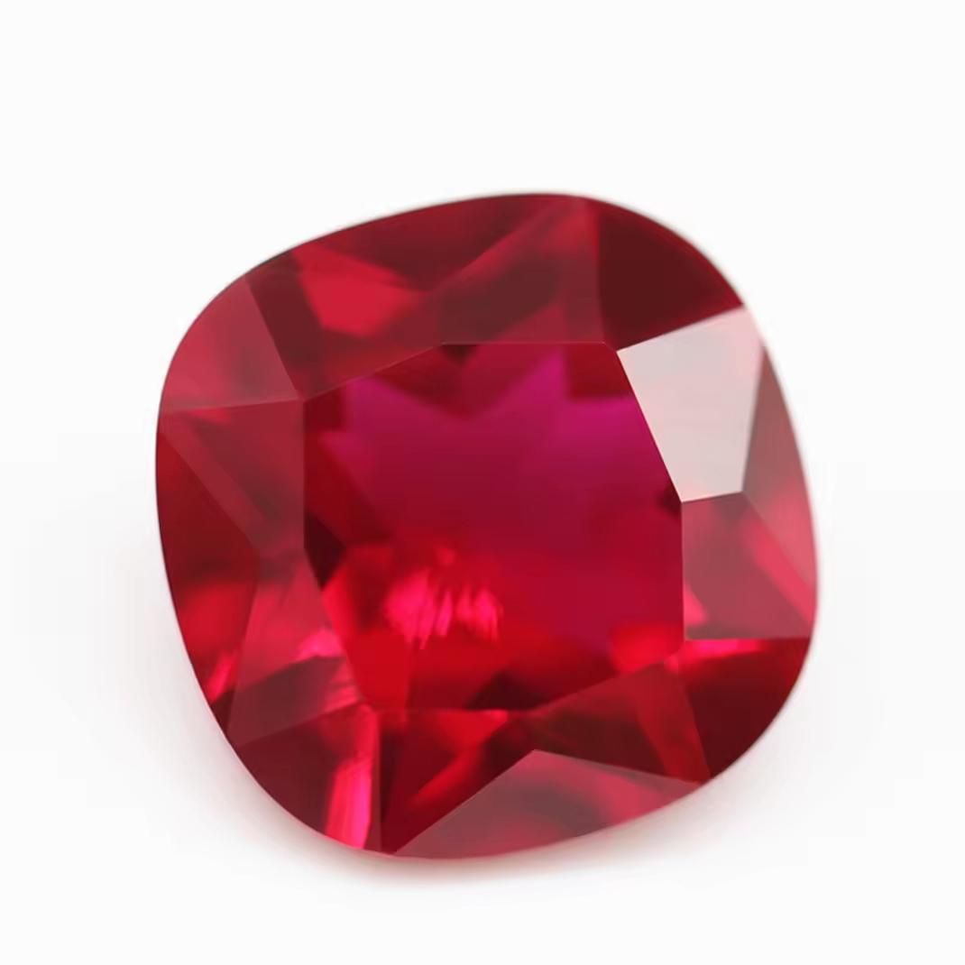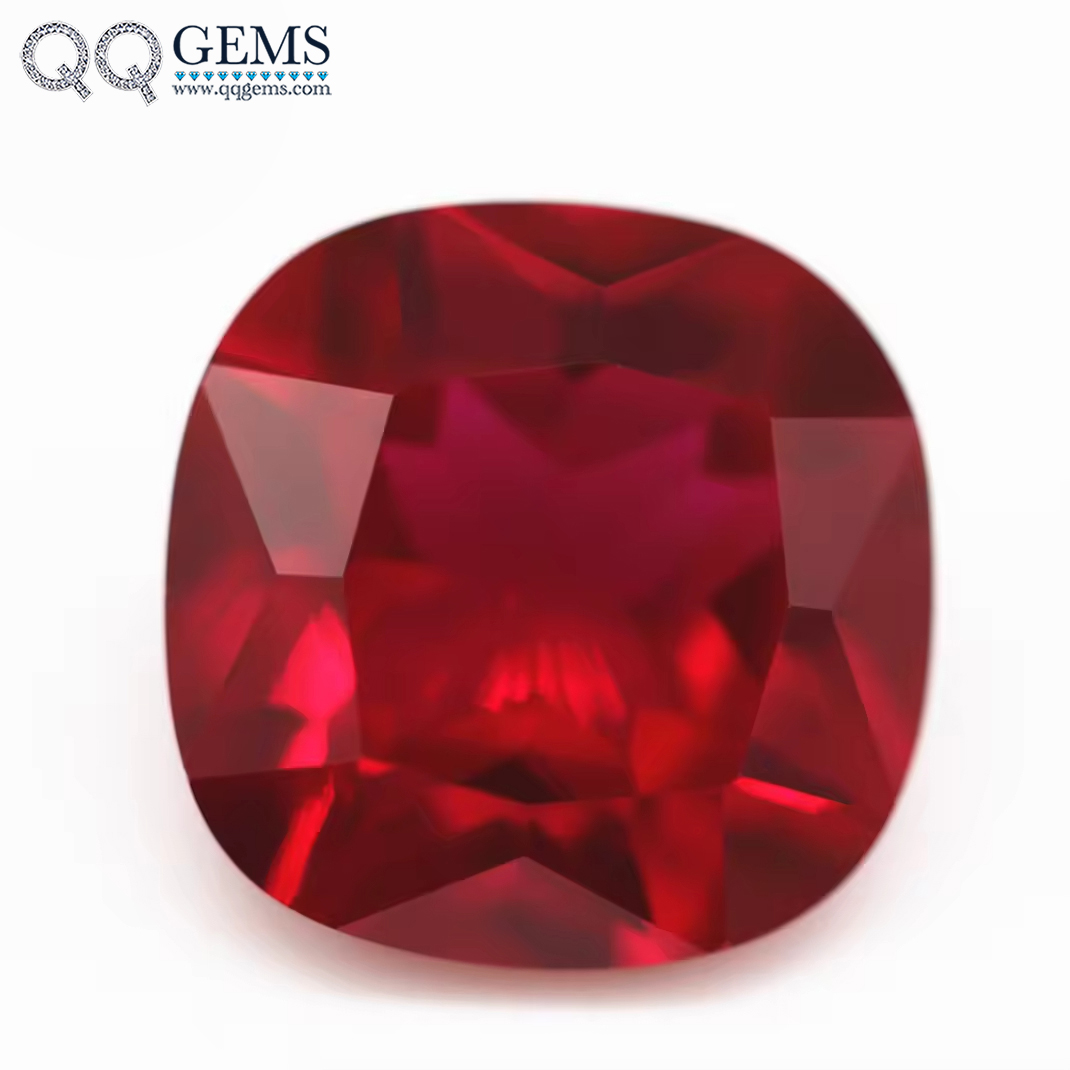 Wuzhou Gems Machine Cut Cushion Cut 5# Ruby Corundum Stones Cushion Shape Synthetic Pigeon Blood Red Corundum 5# Ruby Gemstones
